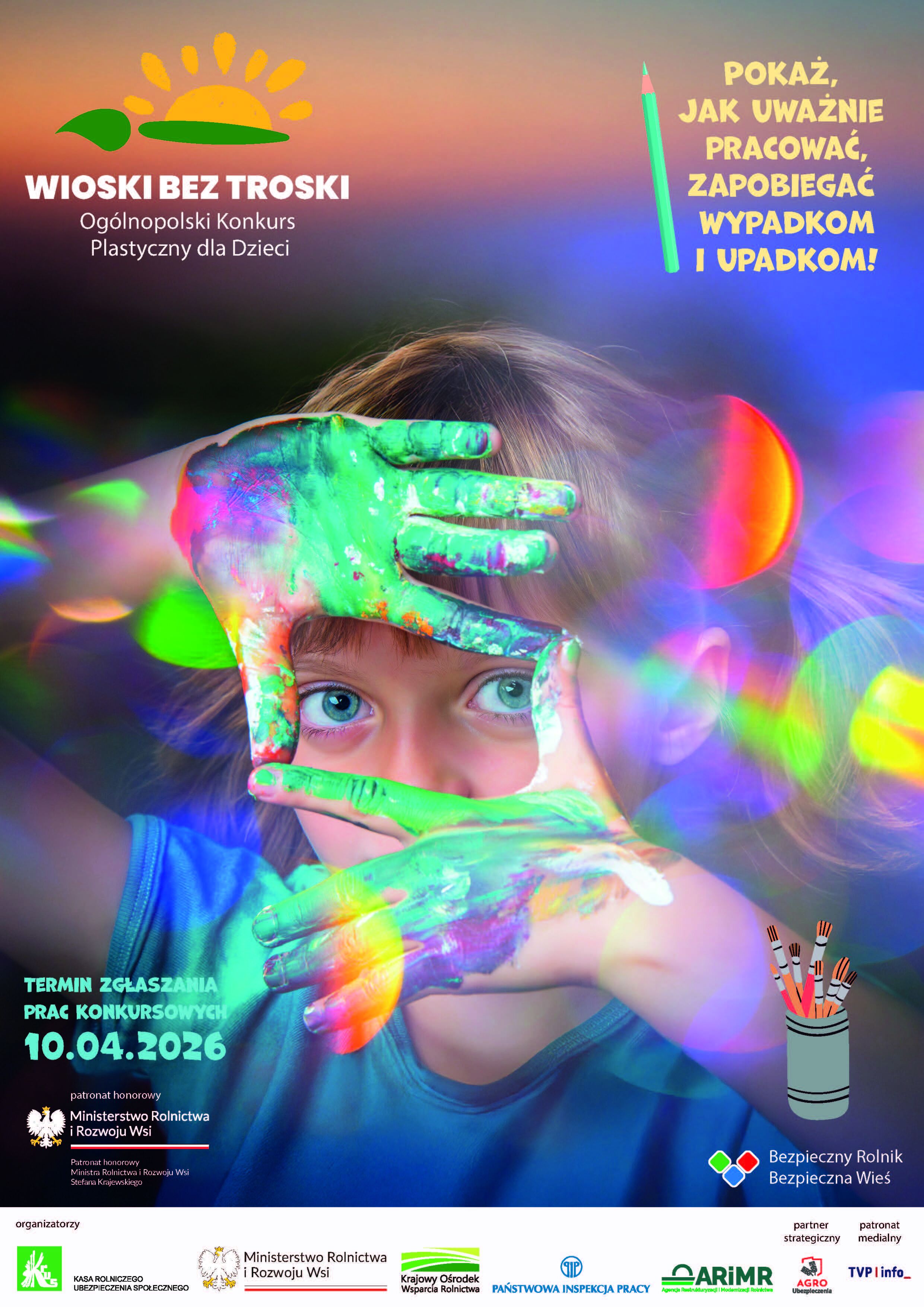 W celu zwiększenia świadomości dzieci na temat bezpieczeństwa w gospodarstwach rolnych oraz dbałości o zdrowie fizyczne i psychiczne, Kasa Rolniczego Ubezpieczenia Społecznego organizuje konkurs plastyczny dla uczniów wiejskich szkół podstawowych.