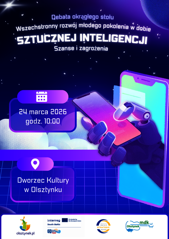 24 marca 2026 r. o godz. 10:00 na Dworcu Kultury w Olsztynku odbędzie się Debata Okrągłego Stołu poświęcona wszechstronnemu rozwojowi młodego pokolenia w świecie nowych technologii oraz współczesnych wyzwań społecznych.