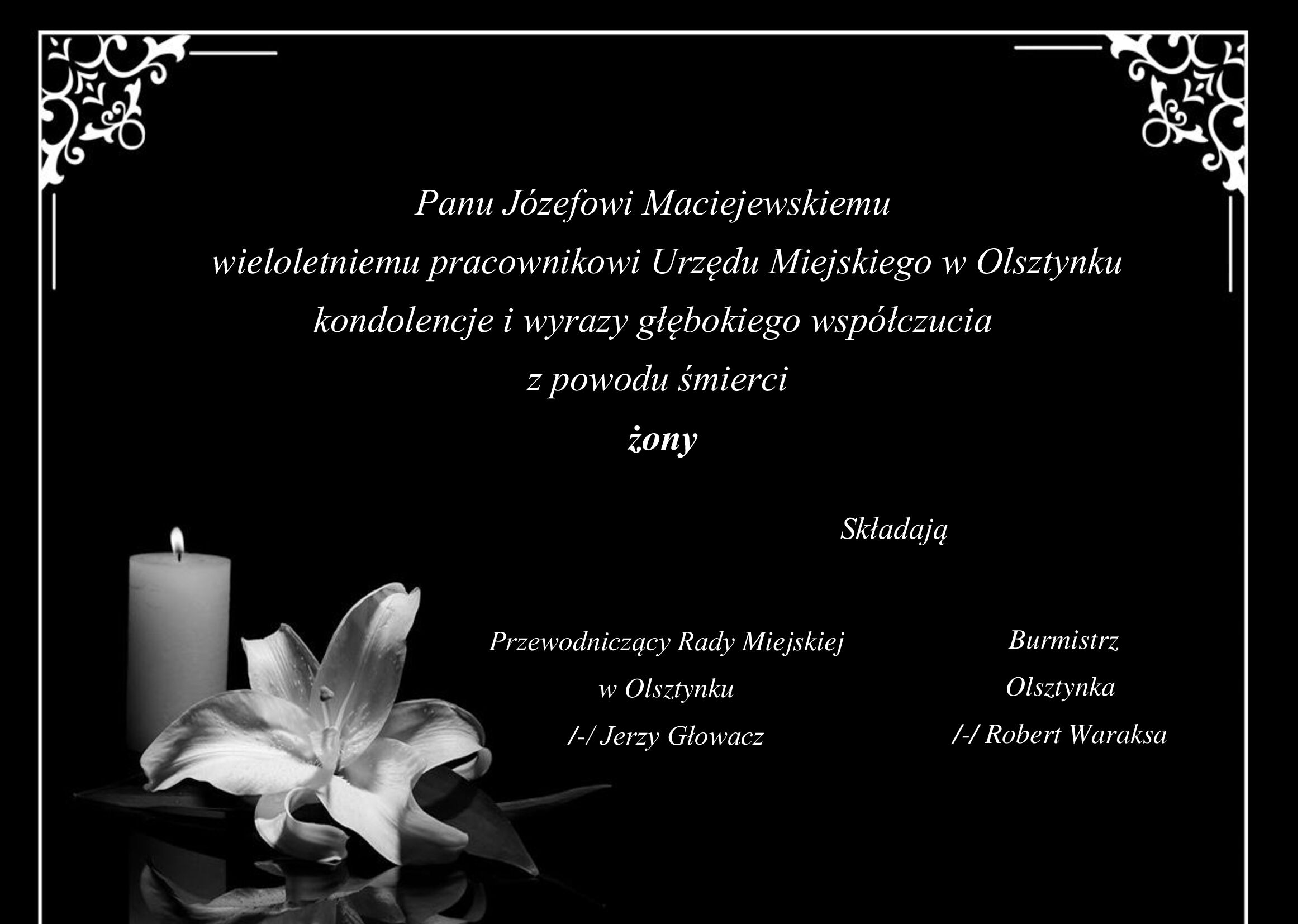 Kondolencje Burmistrza Olsztynka oraz Przewodniczącego Rady Miejskiej w Olsztynku
