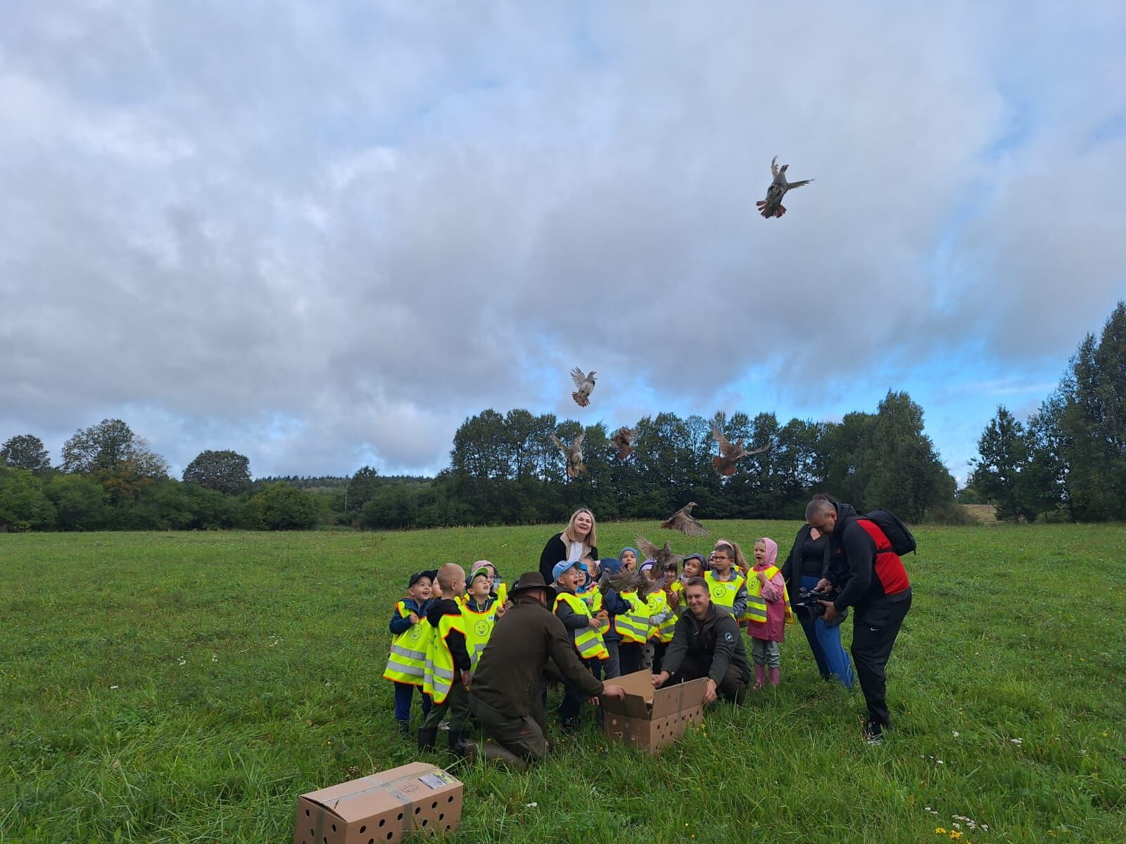 Dnia 19 września 2025 r. w miejscowości Warglewo, odbyło się niezwykłe wydarzenie, które połączyło edukację ekologiczną z realnym działaniem na rzecz ochrony środowiska. Dzieci z Przedszkola Miejskiego w Olsztynku miały niepowtarzalną okazję wziąć udział w projekcie reintrodukcji kuropatwy – gatunku ptaka, którego liczebność w ostatnich latach drastycznie zmalała. Reintrodukcja, czyli ponowne wprowadzenie gatunku do jego naturalnego środowiska, ma na celu odbudowę populacji kuropatwy polnej – niezwykle ważnego elementu rodzimego ekosystemu. Przedsięwzięcie zostało zorganizowane przez Koło Łowieckie „Jeleń” w Olsztynie, w ramach projektu reintrodukcji kuropatwy zwyczajnej, finansowanego ze środków Wojewódzkiego Funduszu Ochrony Środowiska i Gospodarki Wodnej w Olsztynie, we współpracy z Nadleśnictwem Stare Jabłonki.
