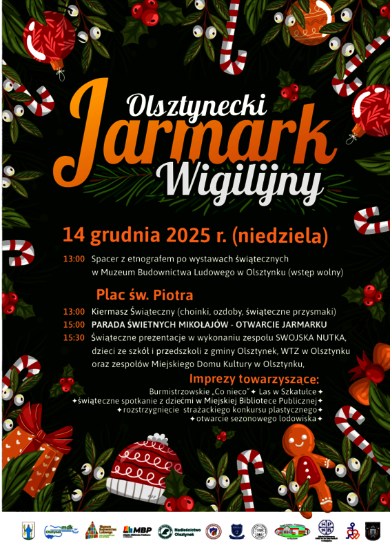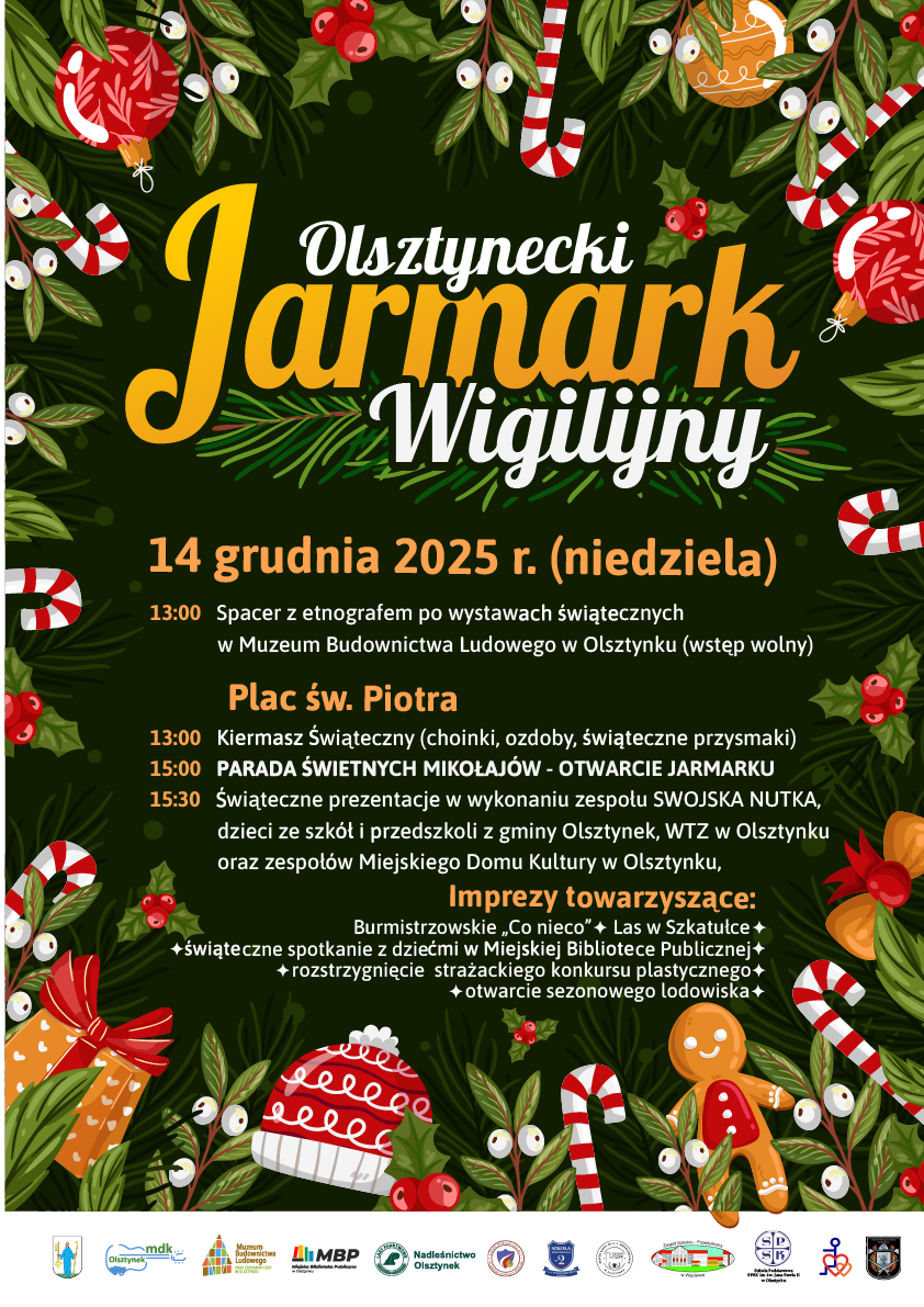 Serdecznie zapraszamy mieszkańców gminy Olsztynek oraz gości z regionu na tegoroczny Olsztynecki Jarmark Wigilijny, który odbędzie się w niedzielę, 14 grudnia 2025 r. Wydarzenie wprowadzi nas w atmosferę zbliżających się Świąt Bożego Narodzenia, łącząc tradycję, lokalną kulturę i rodzinne atrakcje.