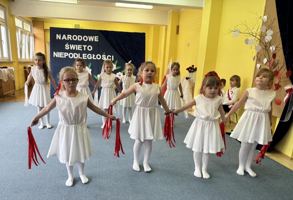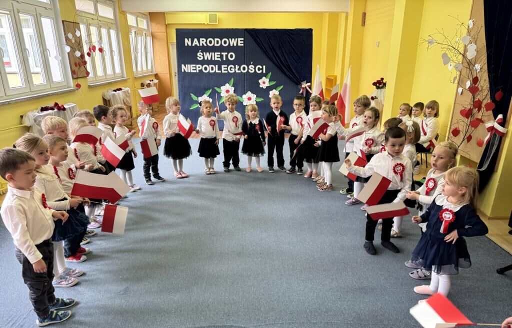 Dnia 7 listopada 2025r. w naszym przedszkolu odbyła się uroczystość z okazji Narodowego Święta Niepodległości. Akademię rozpoczęliśmy wprowadzeniem pocztu flagowego i odśpiewaniem hymnu narodowego w ramach ogólnopolskiej akcji „Szkoła do hymnu”. Następnie Dyrektor Przedszkola Miejskiego w Olsztynku – Pani Barbara Sternicka powitała wszystkich obecnych. Program artystyczny pt. „Akademia dla Niepodległej” przedstawiły dzieci z grup III, V, VII, IX. Mali patrioci zaprezentowali wiersze, piosenki i tańce o tematyce patriotycznej. Piękny występ dzieci został nagrodzony gromkimi brawami. Zwieńczeniem tego dnia była niespodzianka przygotowana dla dzieci przez rodziców, patriotyczne słodkości: torty, ciasta i ciasteczka.