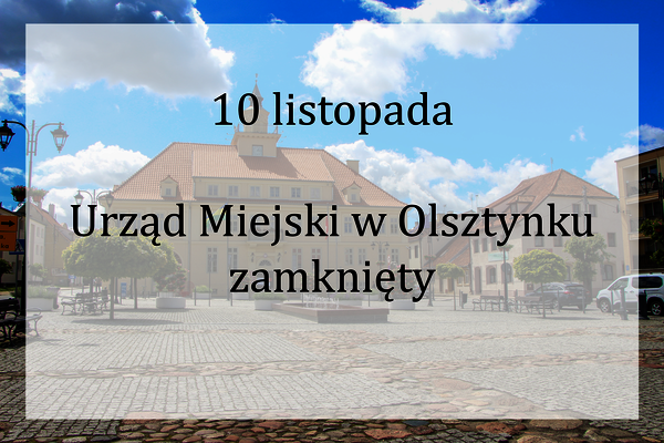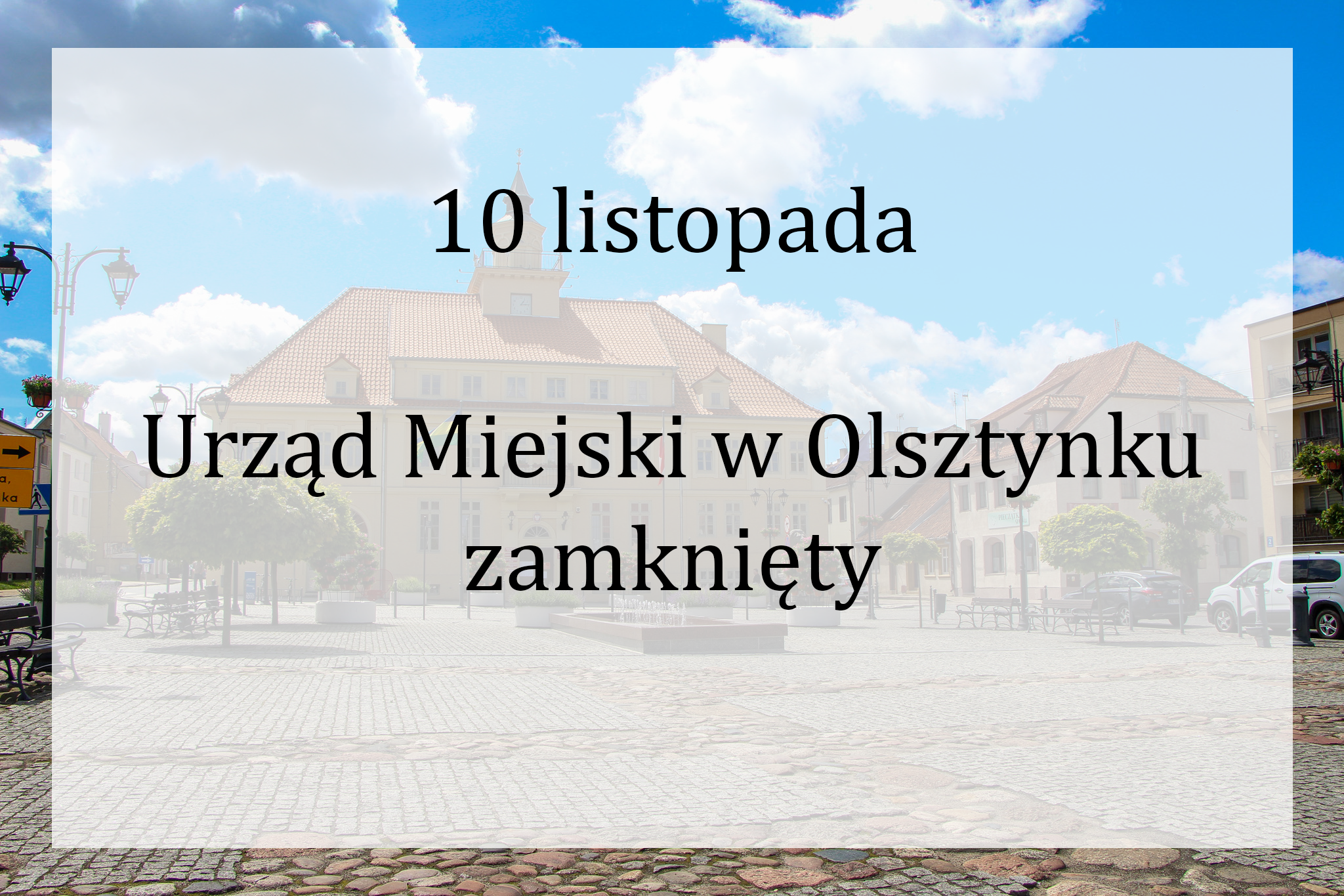Przypominamy, że w poniedziałek, 10 listopada 2025 r., Urząd Miejski w Olsztynku będzie nieczynny.