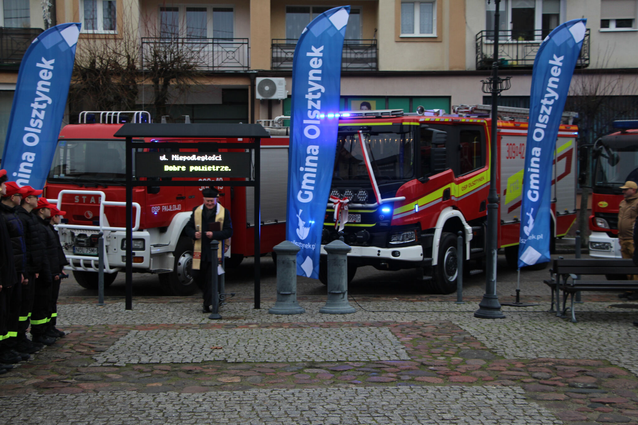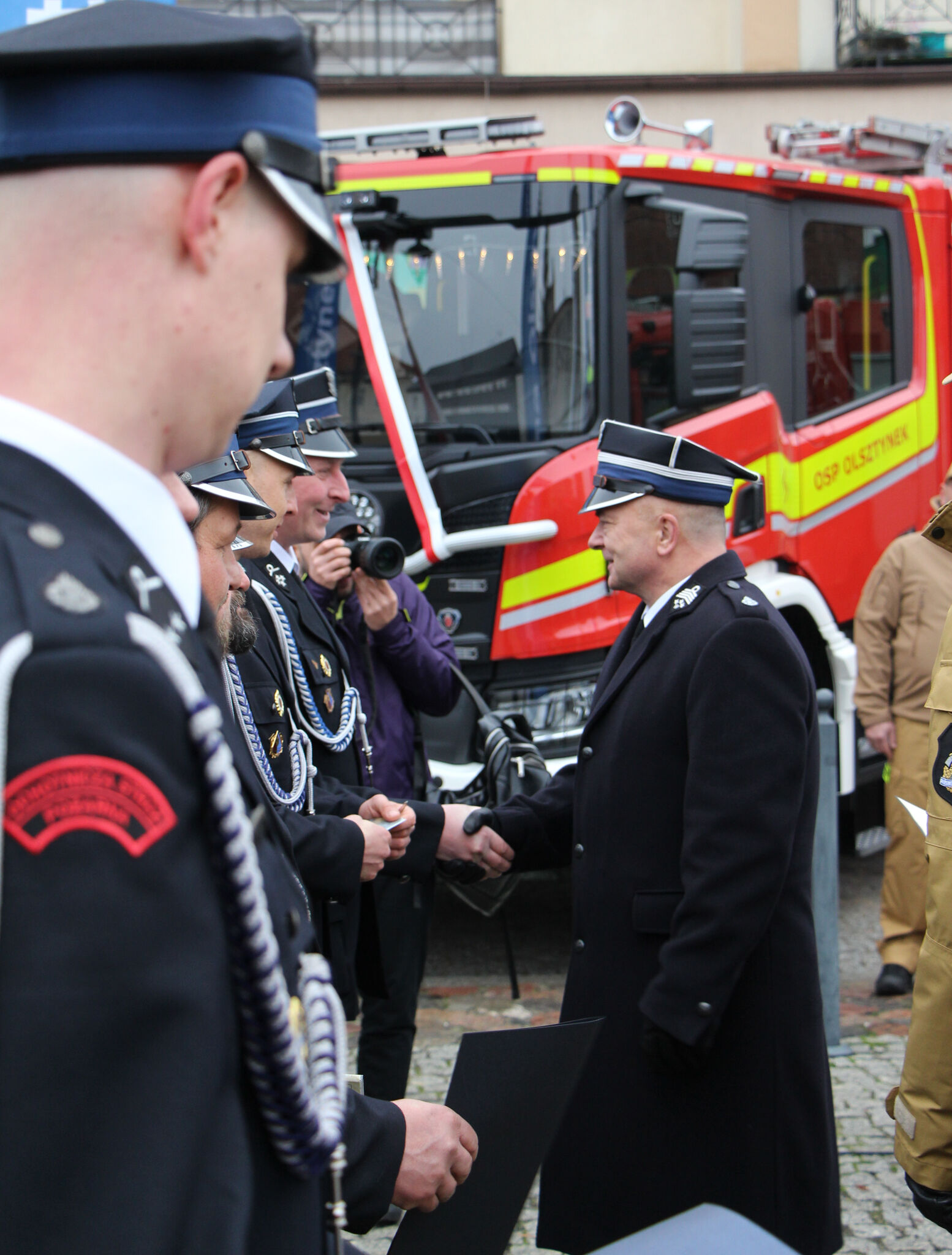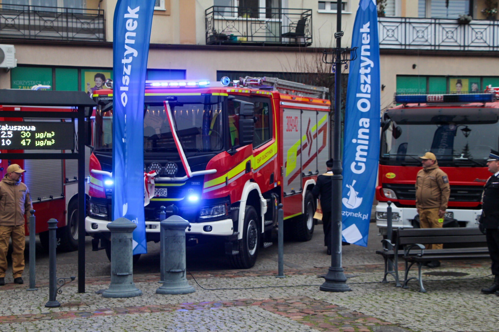 6 grudnia na Placu św. Piotra w Olsztynku odbyła się uroczystość, podczas której jednostki Ochotniczych Straży Pożarnych z terenu gminy otrzymały nowe oraz relokowane pojazdy ratowniczo-gaśnicze. Wydarzenie zgromadziło licznie strażaków, mieszkańców oraz przedstawicieli samorządu, a także wielu zaproszonych gości, wśród których znaleźli się m.in. Burmistrz Olsztynka Robert Waraksa, Marszałek Województwa Warmińsko-Mazurskiego Marcin Kuchciński, Senator RP Ewa Kaliszuk, Starosta Powiatu Olsztyńskiego Andrzej Abako, Wicestarosta Powiatu Olsztyńskiego Artur Wrochna oraz Komendant Koendy Miejskiej PSP w Olsztynie bryg. Łukasz Jasiński. Obecność tak szerokiego grona przedstawicieli władz podkreśliła znaczenie współpracy i ciągłego wzmacniania bezpieczeństwa lokalnej społeczności.