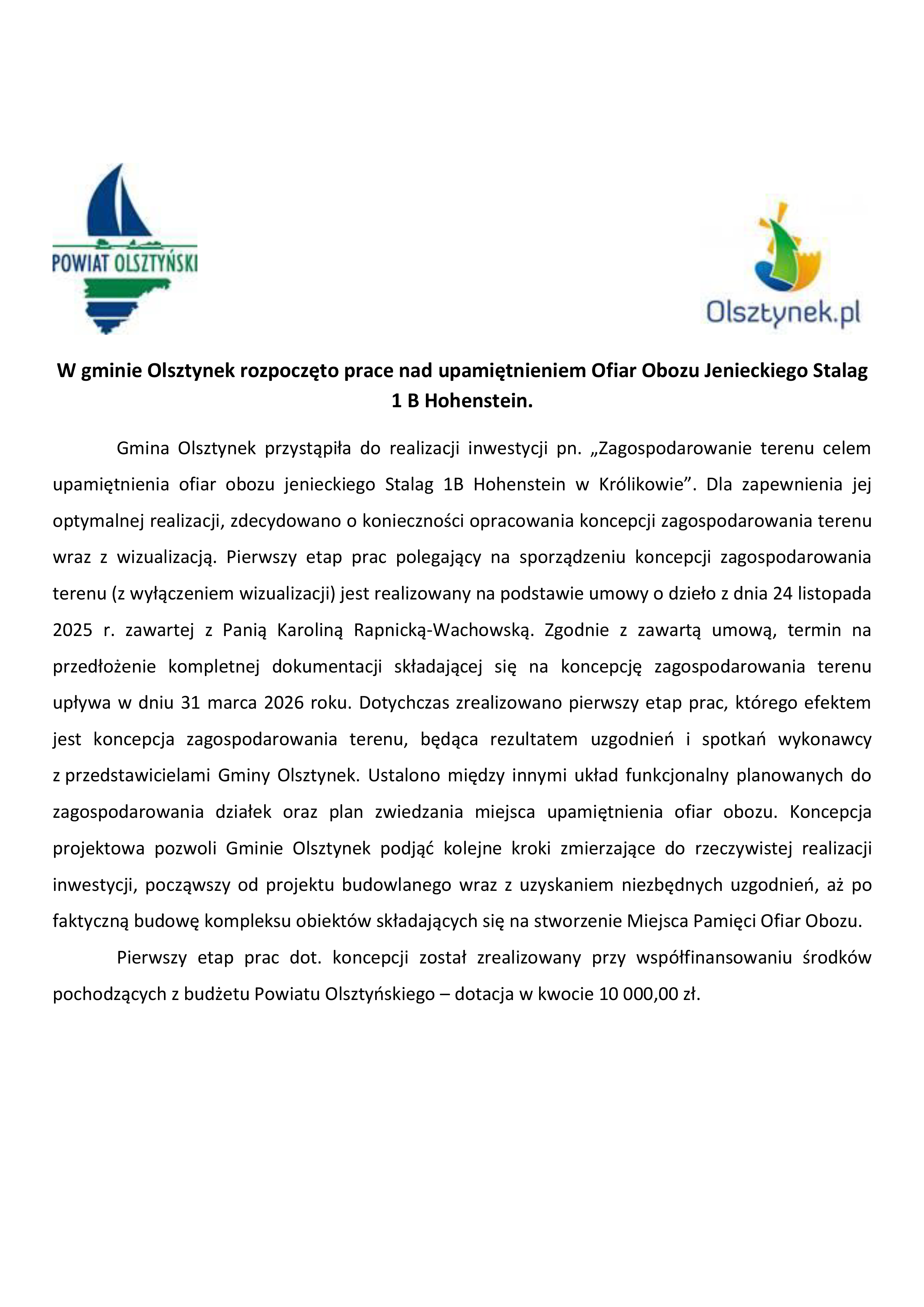 I otwarty konkurs ofert na realizację zadań publicznych w Gminie Olsztynek na rok 2026