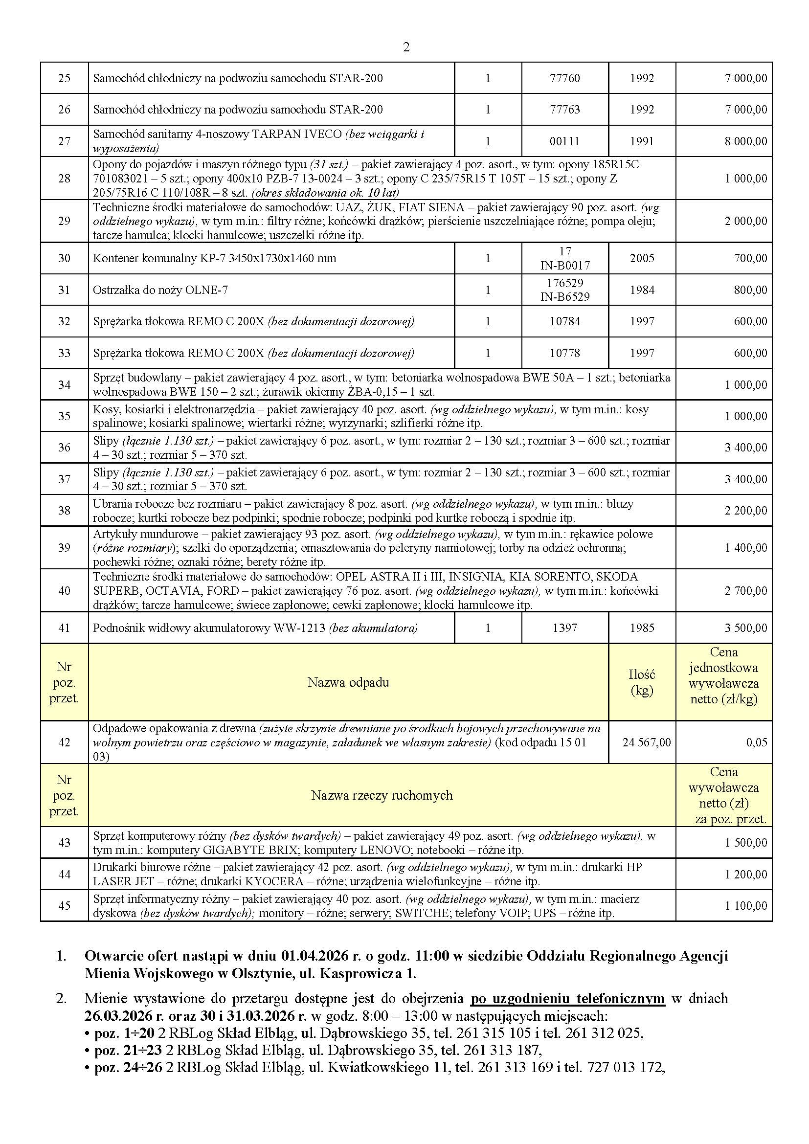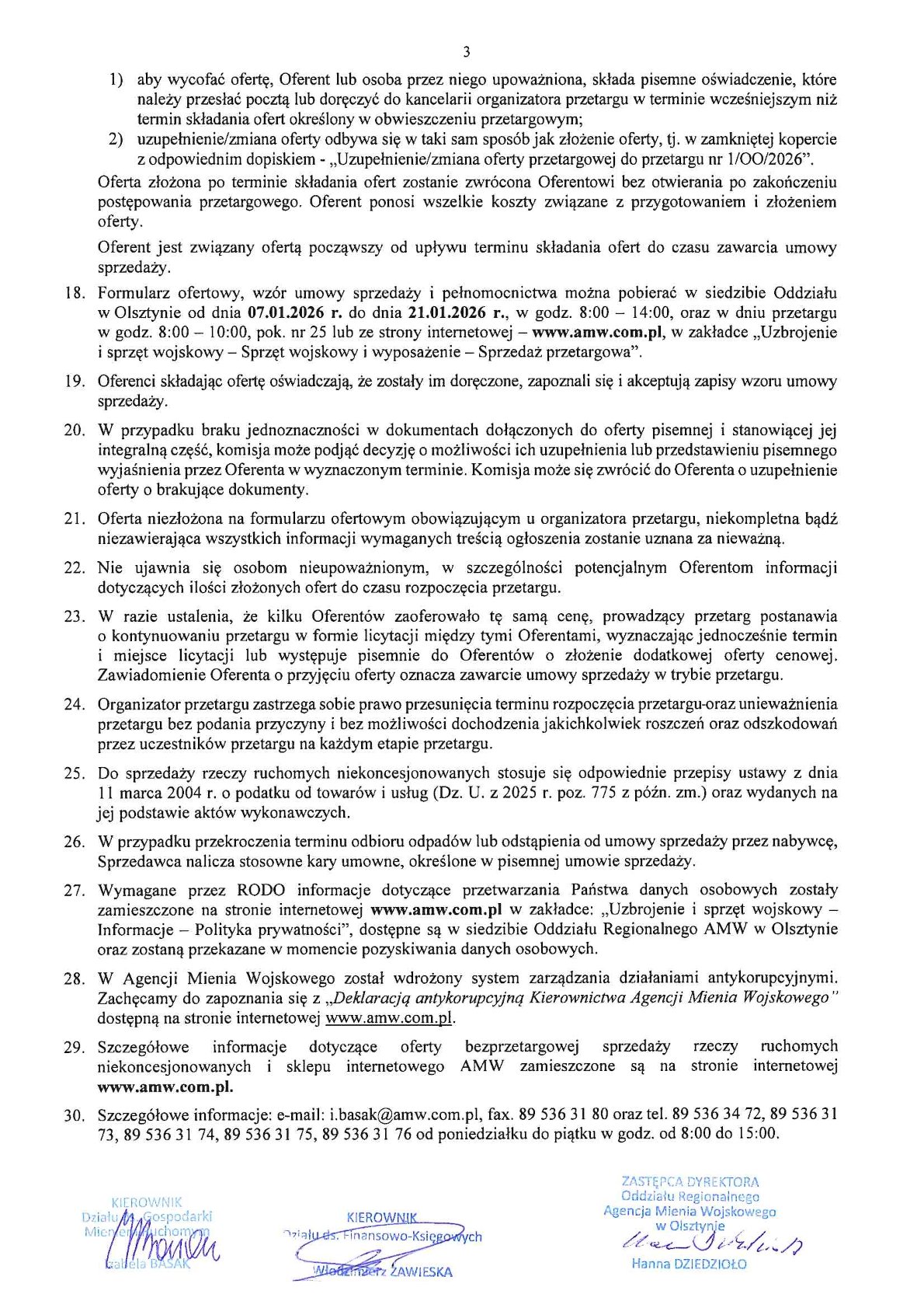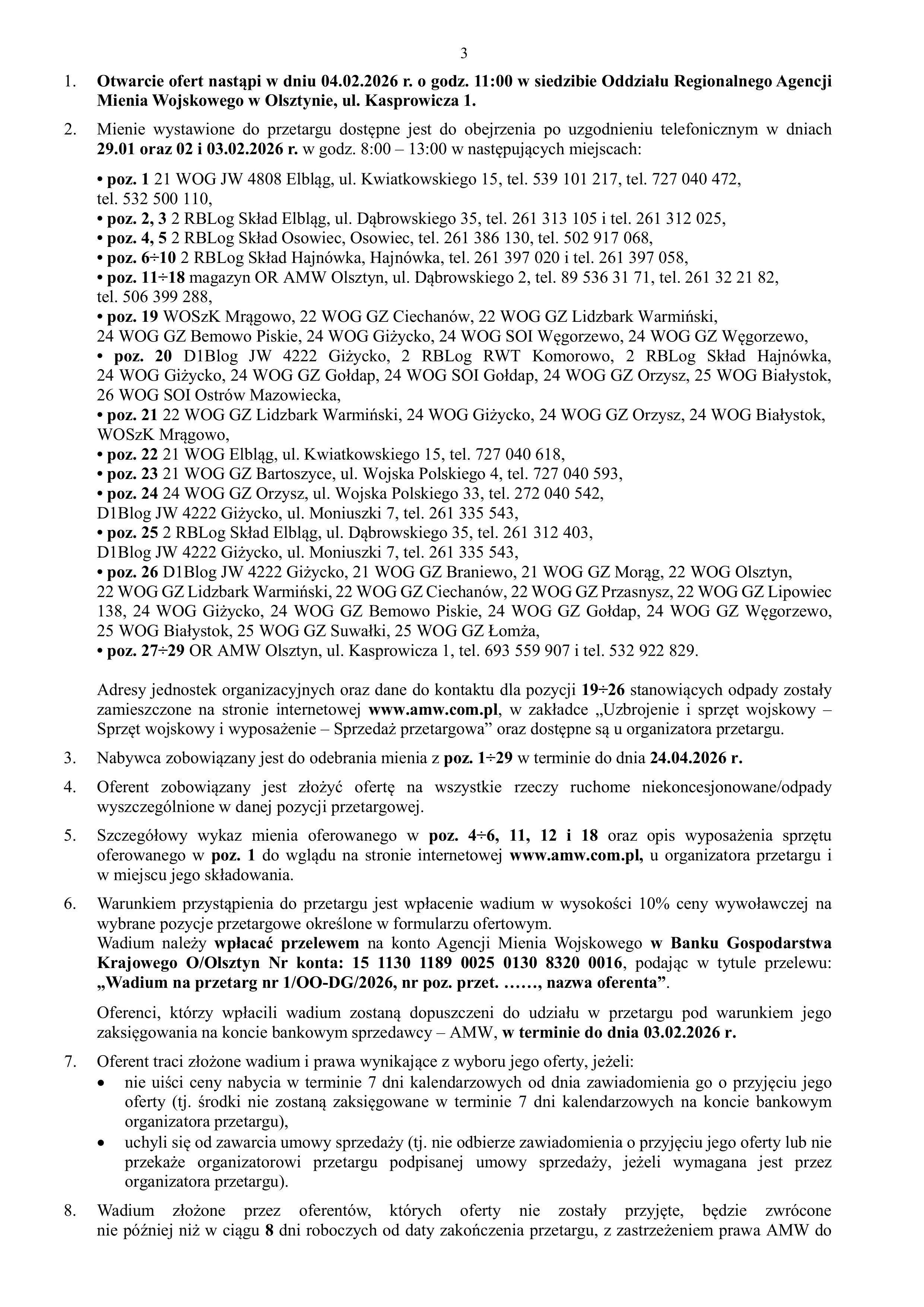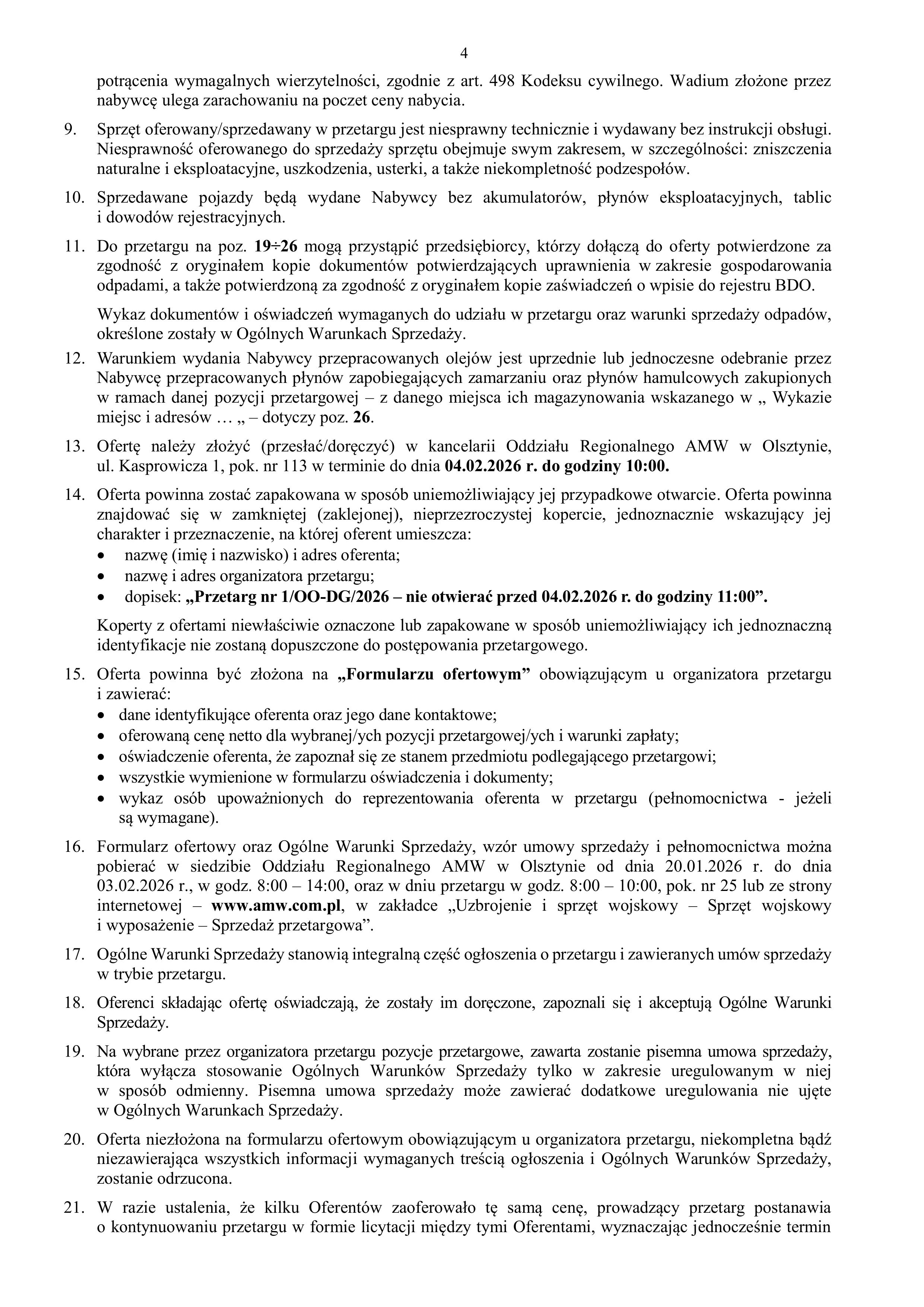 Ogłoszenie o przetargu publicznym pisemnym NR 1/OO-DG/2026 na sprzedaż rzeczy ruchomych niekoncesjonowanych